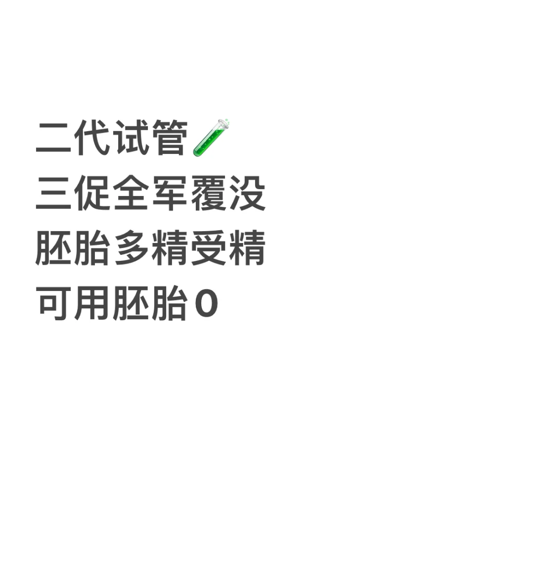 今年2月一代二促,取6,1颗不成熟,其余全部多精受精,无可用胚胎,后查了基因没问题