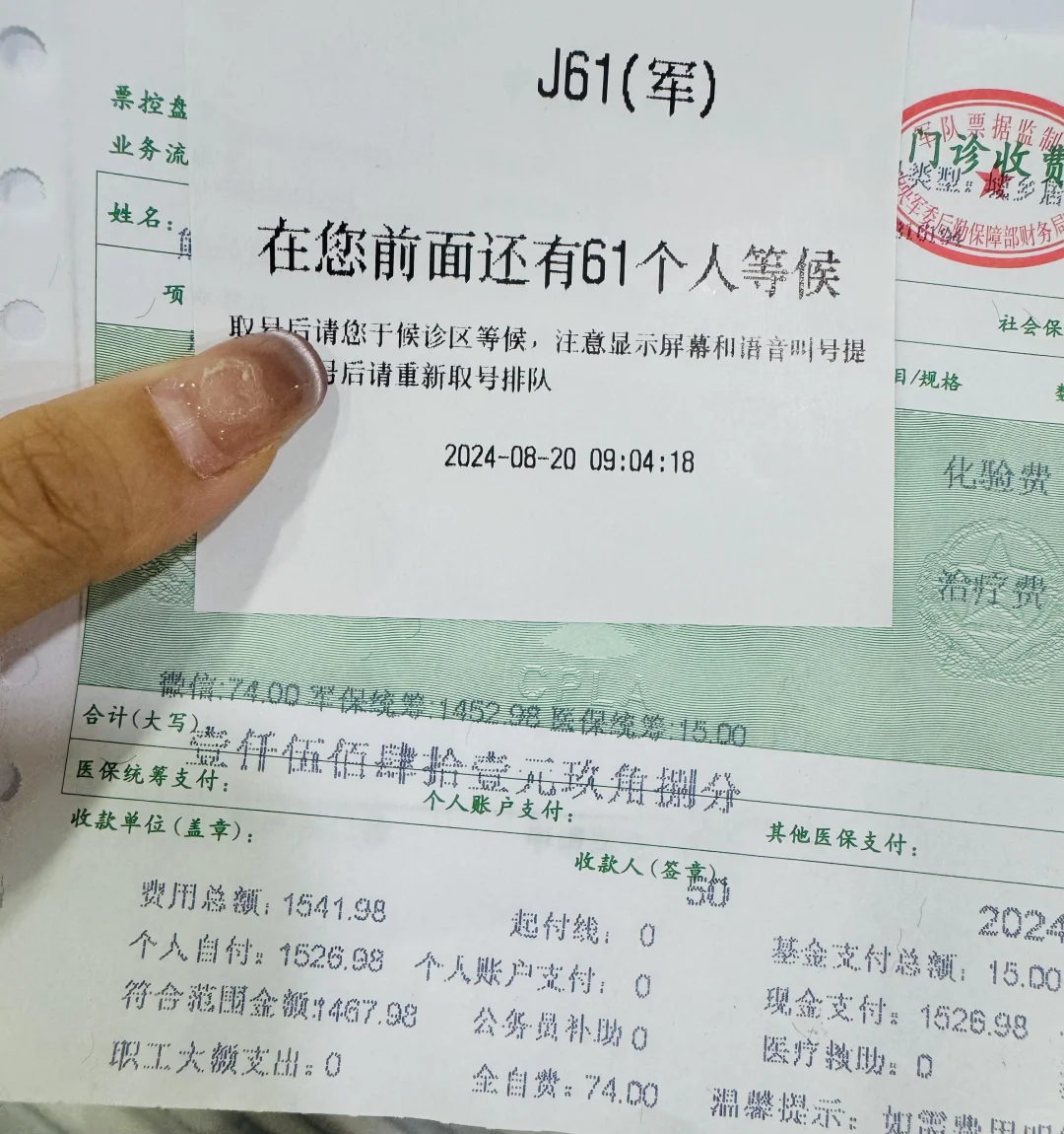 医保统筹就15 军属统筹是1400多 自费74块钱