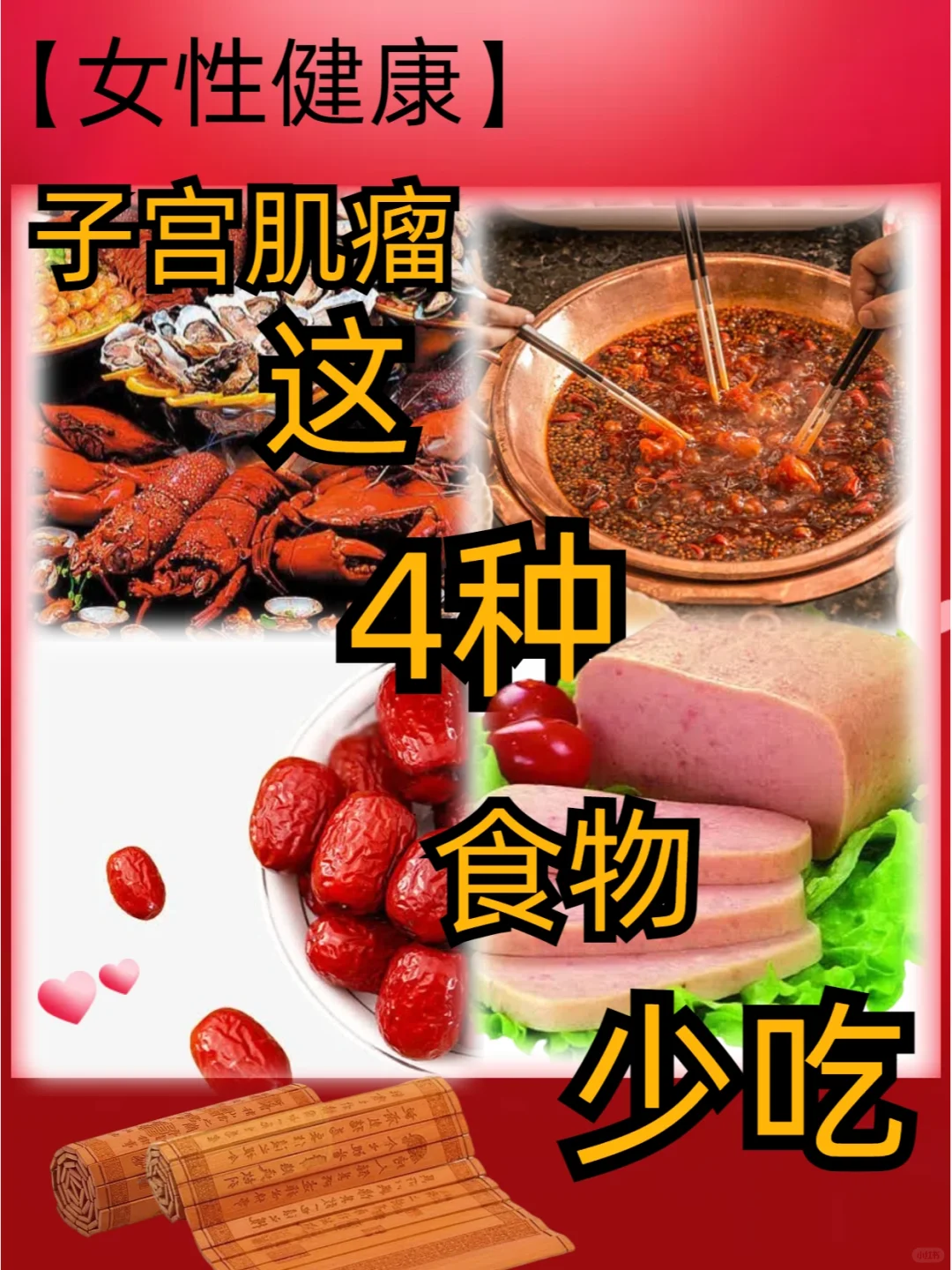 女性健康这4种食物,喂大子宫肌瘤,再喜欢也要少吃。子宫肌瘤是子宫平滑肌组织增生形成的良性肿瘤,日常生活中要更加注意。以下四种食物对子宫肌瘤姑娘们要少吃甚至不吃!1、海鲜对于子宫肌瘤来说,由于多数海鲜食品都是高蛋白、高营养的食物,若是过分吃海鲜,会加重肝肾的负担。2、红枣中医认为,体内长子宫肌瘤是因为......